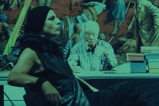 “Movement, sound, and the complex three-dimensional image synchronized in real time. The computer aesthetics of the bodies drifting into central perspective demonstrated their potential so convincingly that the work resembled a meditative homage to digitality.”