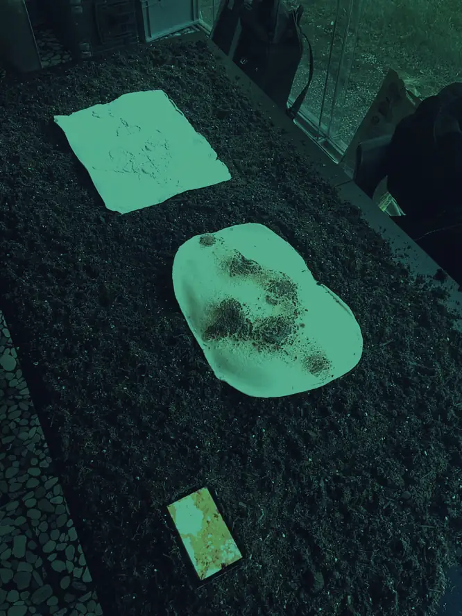 Anastasiia showed “Baking World” in a new version supplemented by a small video monitor showing a performance documentation of the material tests similar to “Starlite”, as well as a video created with AI that visualised the continuation of the idea of “Baking World”.
