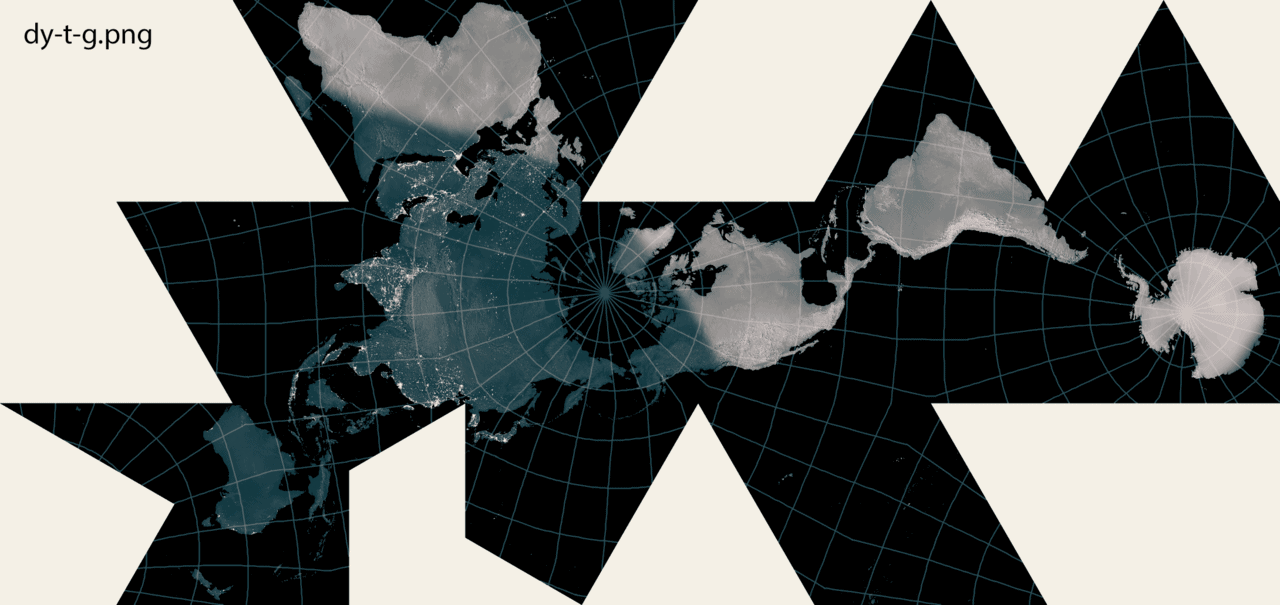Accept the challenge and employ a new world map that includes 100% of life on earth. The anthropocentric Dymaxion map, our grand inspiration, can not do that as it splits the oceans, which cover 70% of earth.