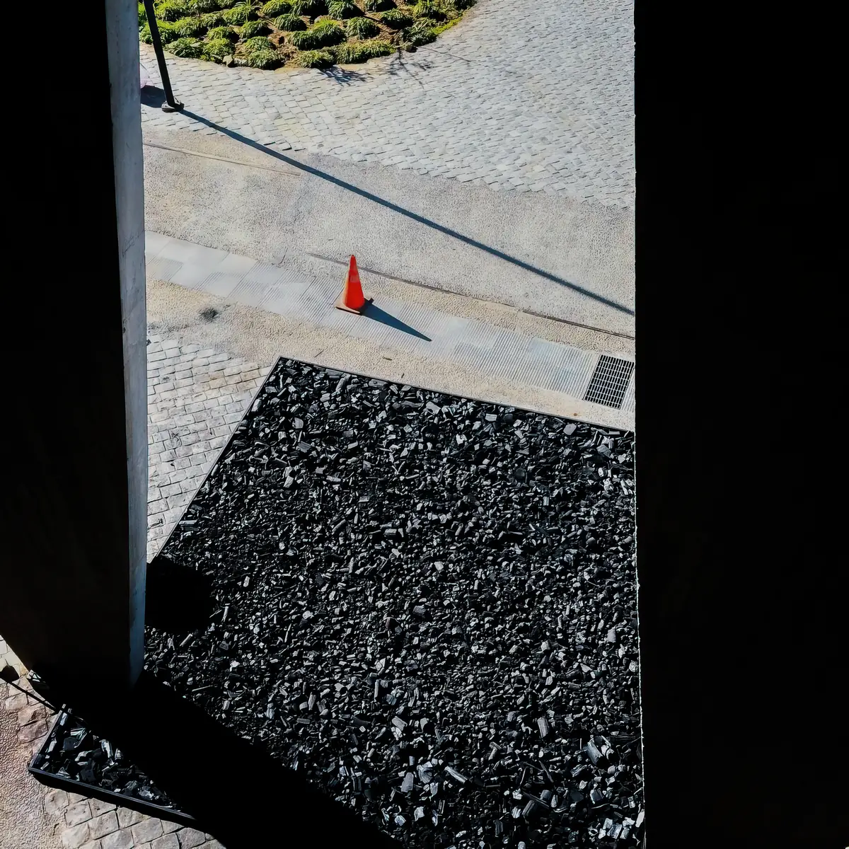 The 5m x 5m square pixel of charcoal delivers the energy to serve, transmit and view the Avatar movie trailer on YouTube 40000 times. Our square is so to say the fossil avatar of the Avatar movie trailer.